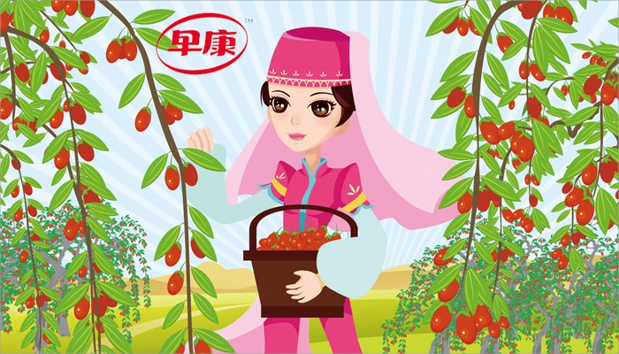 通過動漫的形式為早康枸杞設(shè)計產(chǎn)品宣傳折頁,通過回族風(fēng)情與動漫插畫形式,體現(xiàn)早康枸杞清真、健康、年輕的產(chǎn)品形象。